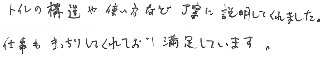 トイレの構造や使い方など丁寧に説明してくれました。仕事もきっちりしてくれており満足しています。