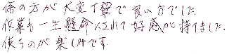 よくして頂き、本当にありがとうございました。説明が大変ていねいでした。